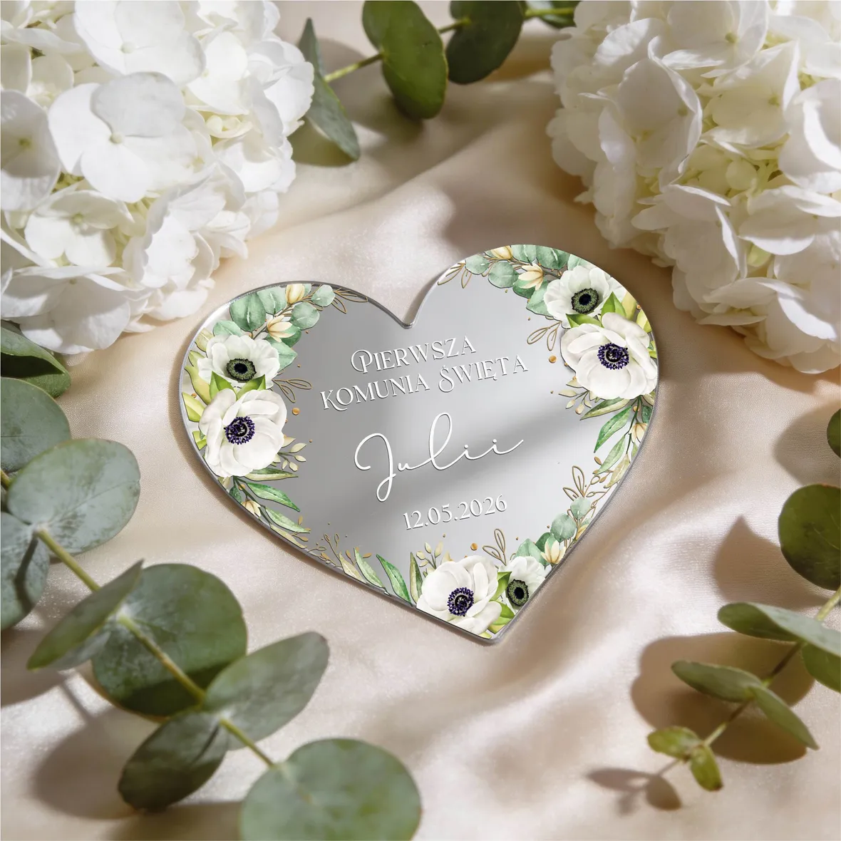 Lustrzane magnesy w kształcie serca - podziękowania dla gości na Komunię
