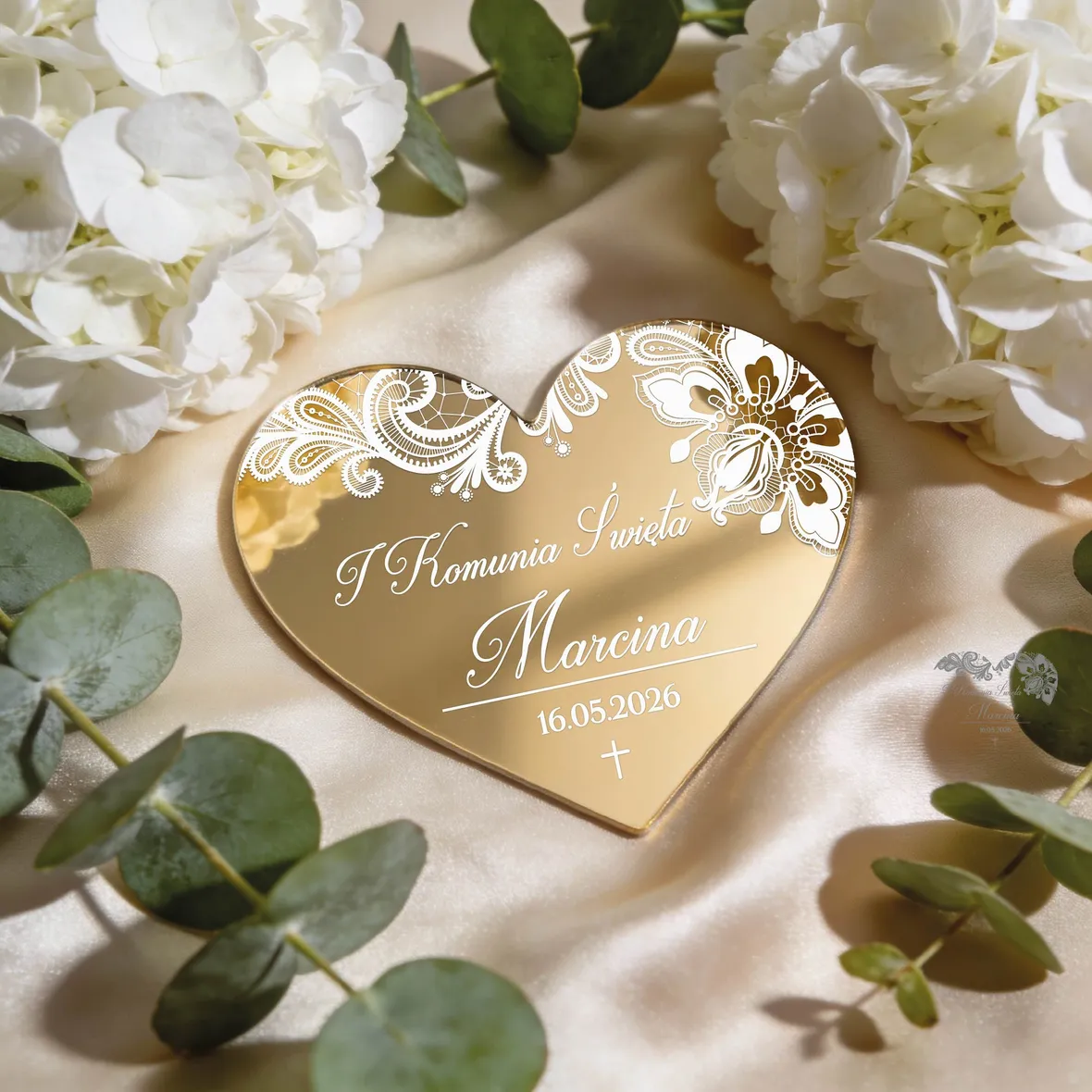 Magnes lustrzany serce złote - podziękowanie dla gości z okazji Komunii Świętej wzór 13