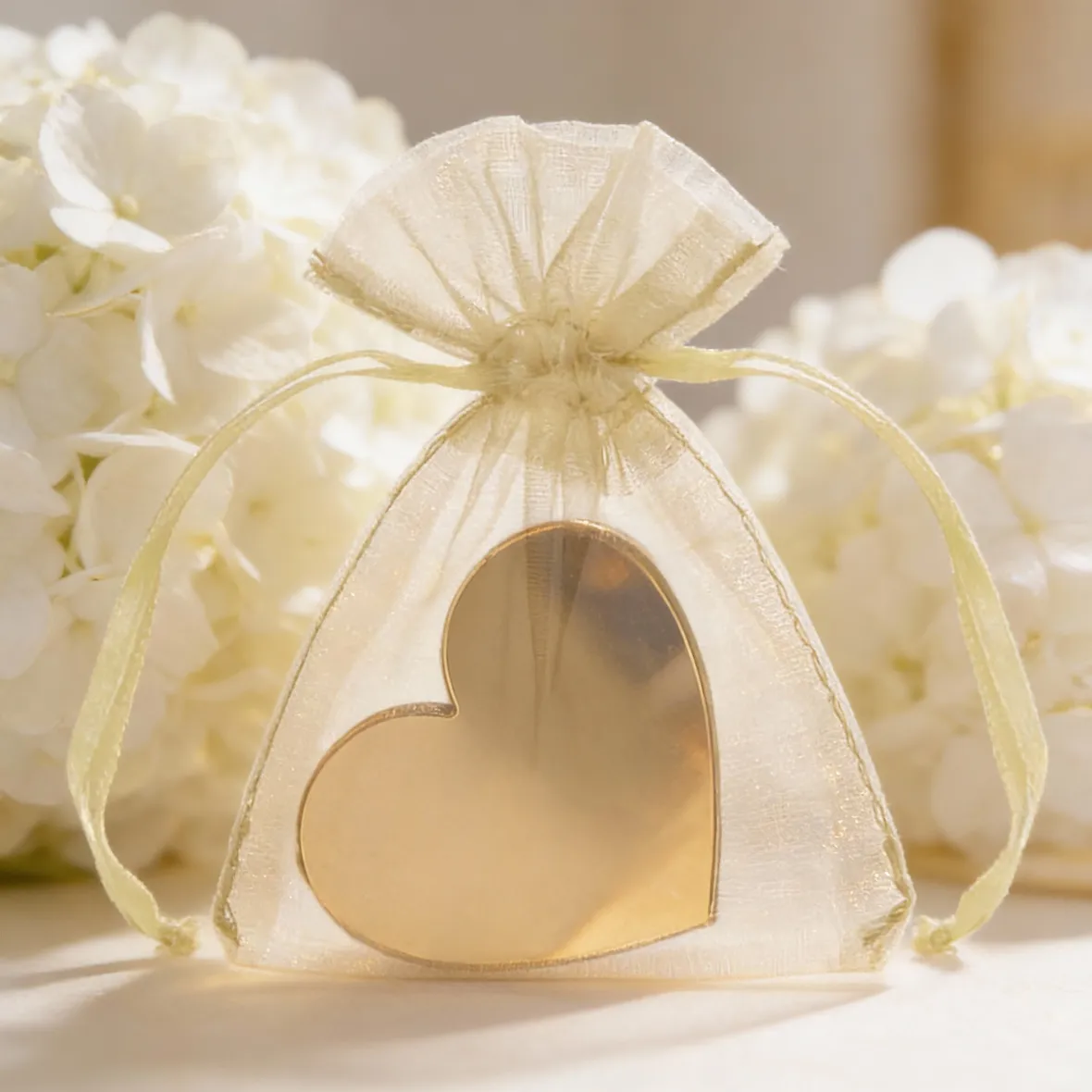Lustrzane magnesy w kształcie serca - podziękowania dla gości na Komunię