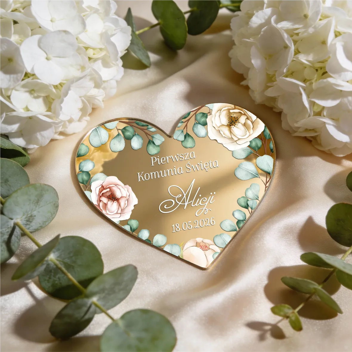 Magnes lustrzany serce złote - podziękowanie dla gości z okazji Komunii Świętej wzór 3